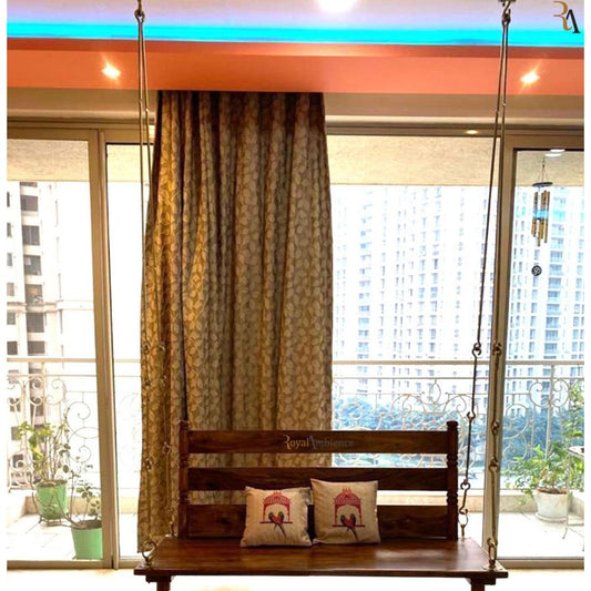 Swing Wooden (Brass Coated Chain ) Jhula with Handrest - Supyar