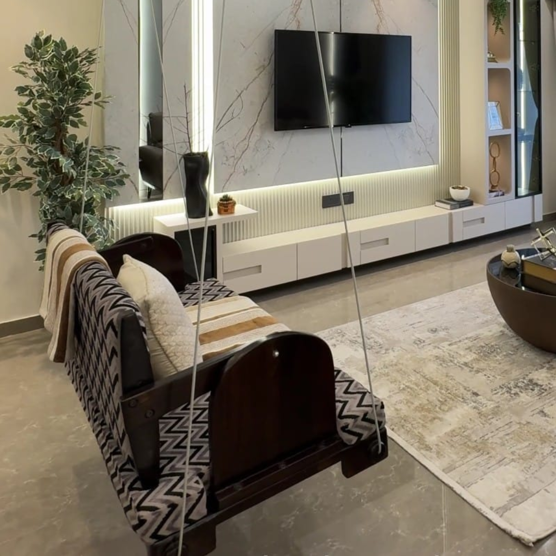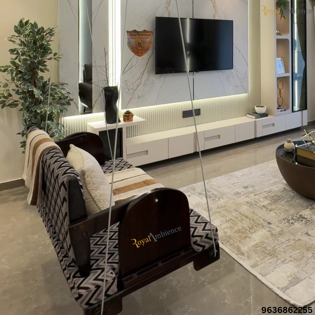 Bring elegance and comfort to your home with our Wooden Reversible Swing / Jhula with Base Cushion. Crafted from high-quality solid wood, this beautifully designed swing adds a royal and traditional charm to any living space. The reversible design allows you to use the swing from both sides, giving you flexibility in placement and style.